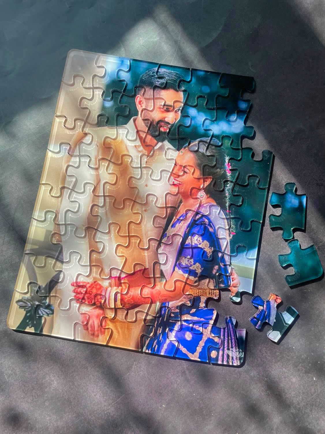 Piece together some fun with our Photo Puzzle! Measuring 8"x10" and featuring 56 high quality acrylic pieces, this colorful and vivid puzzle is perfect for gift giving or game nights. It's also a playful addition to weddings - split into teams and race to complete the puzzle first!